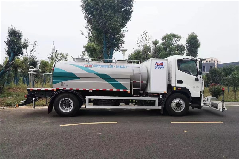 其工作原理是:利用高壓水泵產生的高壓水,經噴水架的高壓噴嘴噴出,利用高壓水流的動能,以高壓力、低流量的方式清洗,強力去污,高效節水,能將路面的頑固泥土及陳舊污漬徹底清洗干凈,高壓水經左(右)角噴噴出,清洗路緣、人行道及護欄隔離區,使用高壓噴槍還可清洗路標、廣告牌、高架路等。噴霧系統具有強大的噴霧降塵、噴灑空氣消毒劑及調節空氣濕度功能。