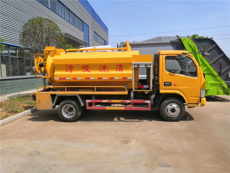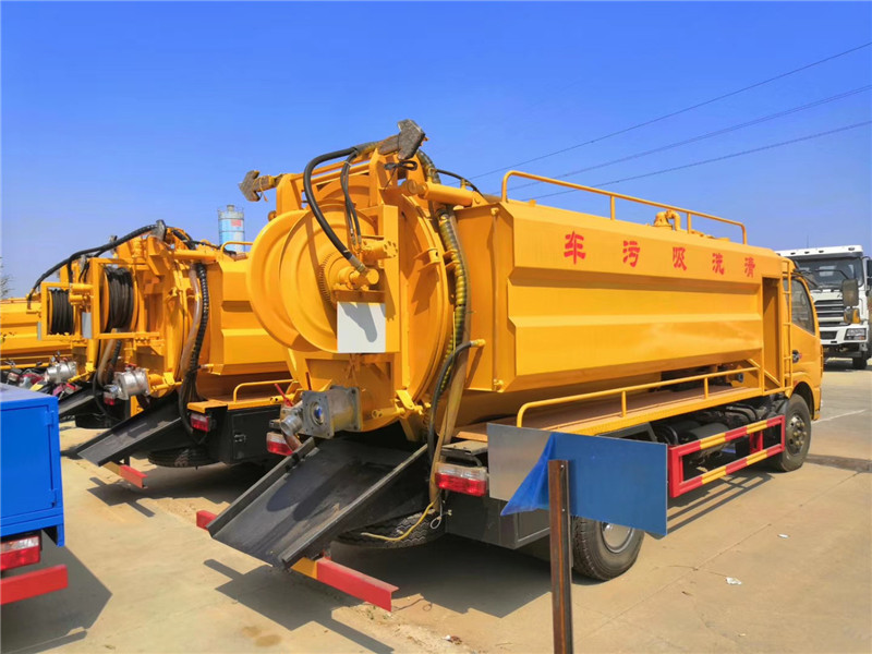 這款車型的輪胎是鋼絲胎,所以抓地力強,也方便行駛。罐體內底部加裝不銹鋼底板1.2米寬,頂部兩側做碳鋼防滑平臺護欄,罐體及封頭厚度:8mm,清水罐用污灌口做,污水罐用水泥罐口,清水罐消防栓進水口在副駕駛一側,水污互通,視糞窗左右各一個,清水罐、污水罐內各做爬梯一個,副梁選用橡膠墊,中置頂,安裝限位閥。品浮330大流量高壓泵,高壓泵兩頭加粗雙進水,加大過濾器。
