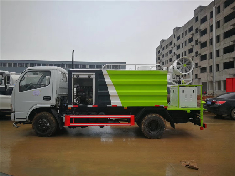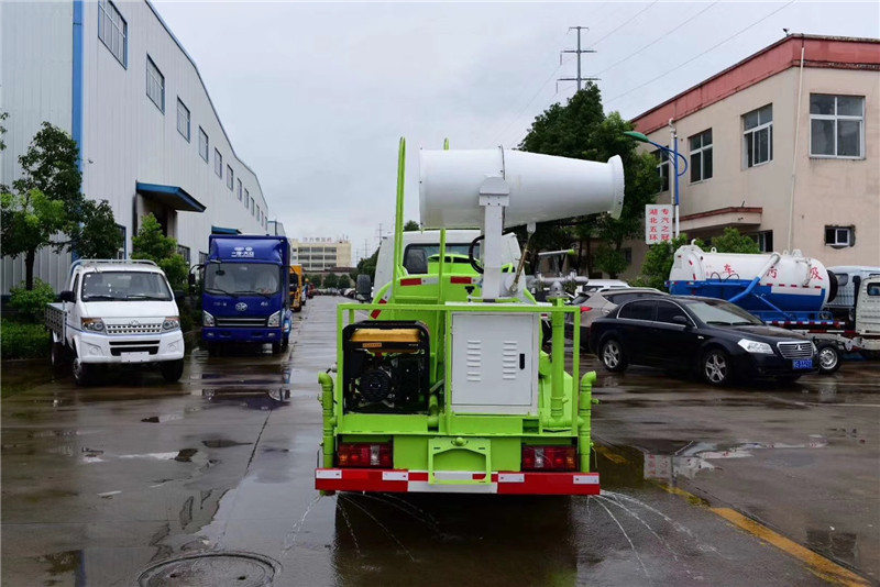 國六東風D6多利卡5噸灑水車工作效率約為普通灑水車的30倍。一臺噴霧降塵車的工作直徑可覆蓋4個標準足球場。水箱中的水經過霧化后,由高壓風機噴出,水霧顆粒極為細小,達到了微米級,其吸附力也增加了3倍,耗水量卻降低了70%,遭遇霧霾天氣、空氣質量PM2.5嚴重超標時,進行液霧降塵、分解淡化空氣中的顆粒濃度、將飄浮在空氣中的污染顆粒物、塵埃等迅速逼降地面,達到清潔凈化空氣的效果。