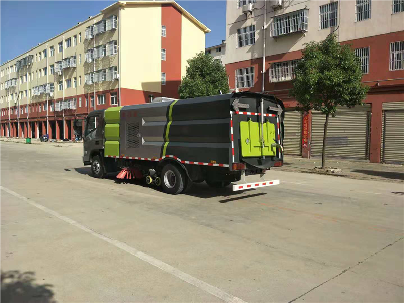 東風多利卡洗掃車具有路面清洗、路面清掃路緣和路緣石立面洗刷、低壓沖洗、噴霧除塵等多功能。