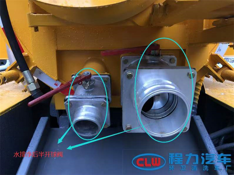 2:清洗吸污車車輛使用后,請打開整車所有的放水球閥開關(guān),待放水完畢后,把球閥關(guān)一半保持球閥半開狀態(tài),防止凍裂,以造成不必要的損失