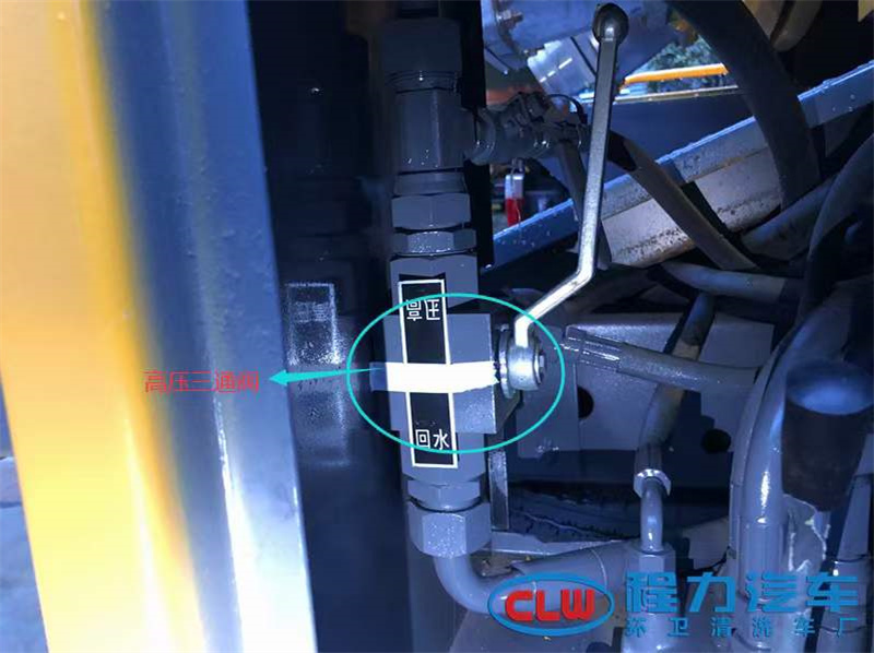 3:清洗吸污車水排凈后,使用車輛的氣推功能,把高壓管和高壓泵里的水吹干凈