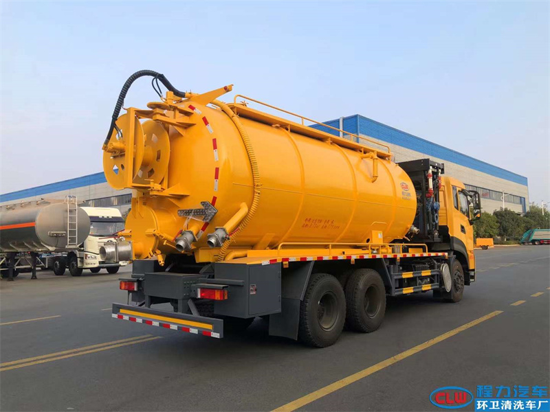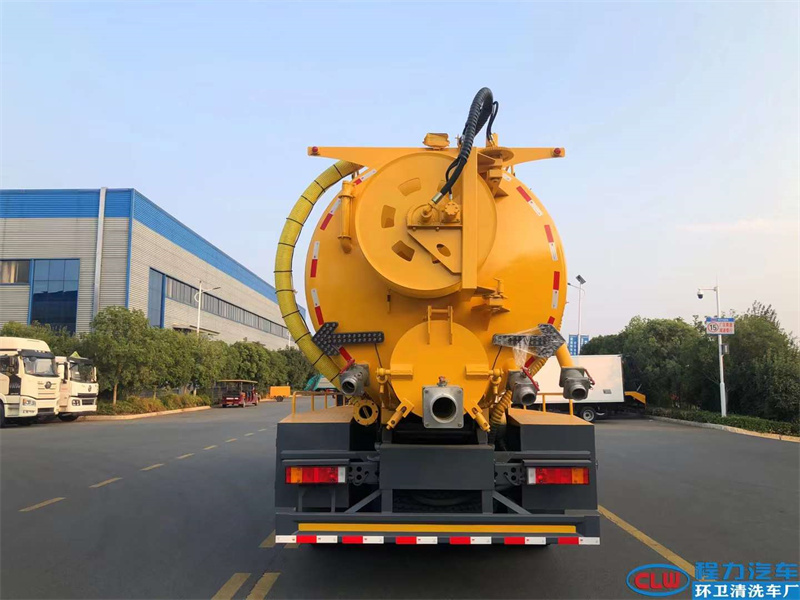 上裝配置:罐體總容積21立方米,武鋼優質鋼板制作,8個厚,污灌底部鋪不銹鋼底板,罐頂帶平臺,一個三爪罐口,帶水污互通,安裝350流量高壓泵,大過濾器,雙進水,尾部600液壓開口,大卷盤,100米25號高壓管,一個9.5公斤噴頭,大箭頭燈,安裝濰柴420馬力副發動機配258水環泵,顏色:工程黃。