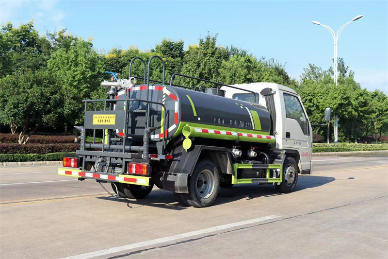 罐體容積2.5方,罐體由Q235武鋼優質碳鋼制作,標配前沖、后灑、側噴、帶后工作平臺、高炮,前沖≥18米,綠化高炮≥35米,配備天億/龍王水泵,自流閥及消防接口各一個,水管兩根,大通徑球閥,邊燈帶電,其余標配。