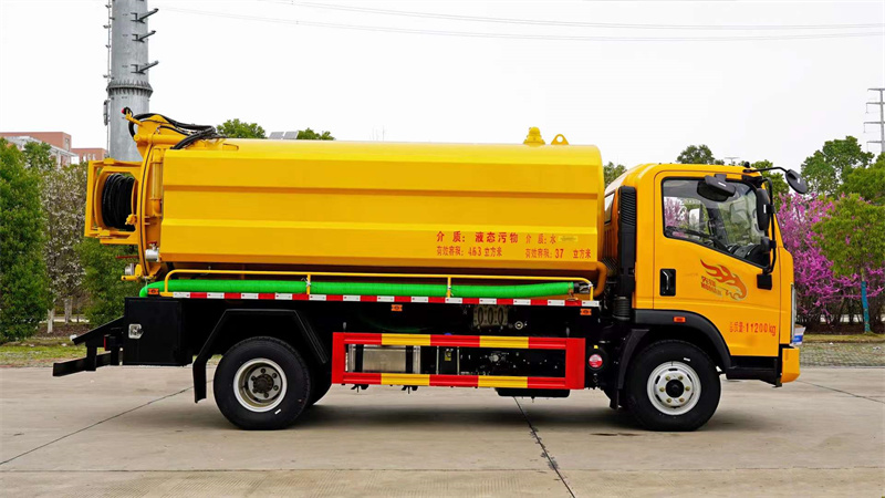 上裝配置:分體式外觀,罐體采用Q235碳鋼板制作,帶有視污窗,帶液壓舉升,后蓋為液壓開啟,吸污泵采用億豐SK-12噸真空吸污泵,帶8米吸污管一根,清水箱和污水箱互通,清水箱帶消防接頭,高壓泵170L帶汽吹水,配60米直徑19高壓管,配10個不同型號噴頭,嚴格按照公告制作(其余標配)。