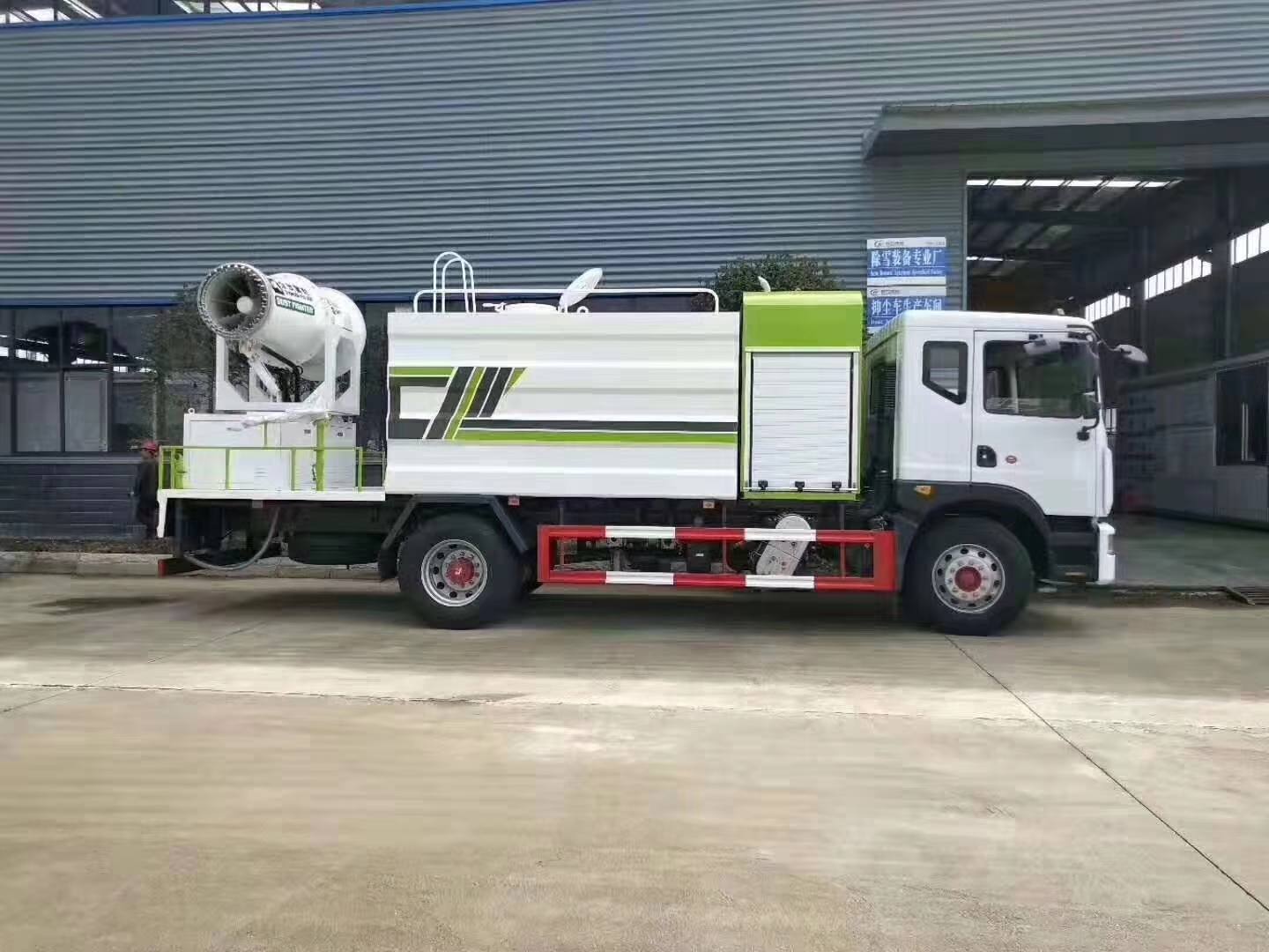 罐體滿載容積10-14立方,前噴,后灑,側噴,高炮,帶工作平臺,平臺加裝120米風送式霧炮,前沖、后灑氣動閥駕駛室自動控制,(采用氣動球閥優勢:1.操作方便,能及時避讓行人及特殊情況。2.避免車輛停止狀態水資源被隨意流失浪費。3.由于前沖后灑管道離地低,方便后期罐體無泄漏維修)。標配50/110大功率專用水泵,具有自吸自排功能,主管道加粗至前后三通使灑水出水量大、工作壓力效果更好,罐體內環氧玻璃鱗片防腐處理(質保兩年)配備柴油發電機組,霧炮可作為噴射農藥,抑塵功能。