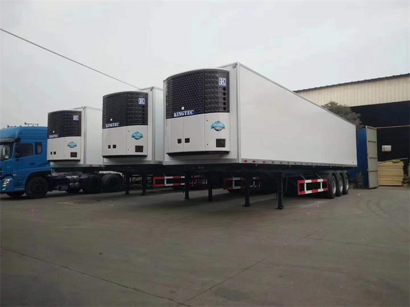 廂體材質為內外玻璃鋼板制作,中間10CM厚聚氨酯保溫板,高強度環保天然樹脂膠,采用國內先進的16米液壓壓板機壓制一次成型,鋁合金型材包邊,門框、門鎖件為不銹鋼,底板上鋪鋁合金通風槽,廂體右側中靠前開單側門,選裝國內知名品牌凱雪、進口美國開利或美國冷王獨立制冷機組,最低溫度可達-18度,