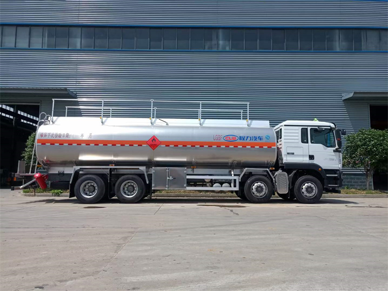 重汽汕德卡前四后八鋁合金油罐車,有效容積30.4立方。
