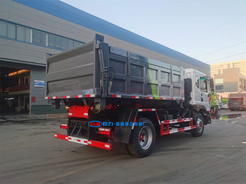 程力高端環衛專業廠國六東風D9鉤臂垃圾車,底盤型號:EQ1185LJ9CDE,3950軸距,玉柴200馬力發動機,275真空胎,空調,加裝防飛濺。
