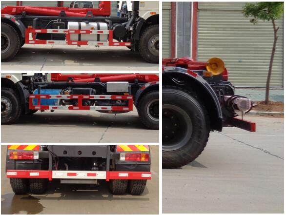1、該車主要用于垃圾轉運,專用裝置為勾臂;2、該車選用4350+1350mm軸距底盤改裝;3、防護材料:Q235B碳鋼,連接方式:左右側面防護與副梁均采用螺栓連接,后下部防護與車架采用螺栓連接,后部防護斷面尺寸(mm):120×60,后部防護離地高度(mm):490;4、ABS系統生產廠家:長春瑞立科密汽車電子有限公司,型號:CM4XL.5、隨底盤裝備限速裝置,限速89km/h.6、安裝具有衛星定位功能的行駛記錄儀.7、隨底盤裝發動機,油耗值對應關系(L/100km)CA6DK1-26E6/32.5,CA6DK1-28E6/32.5,CA6DK1-32E6/32.5。