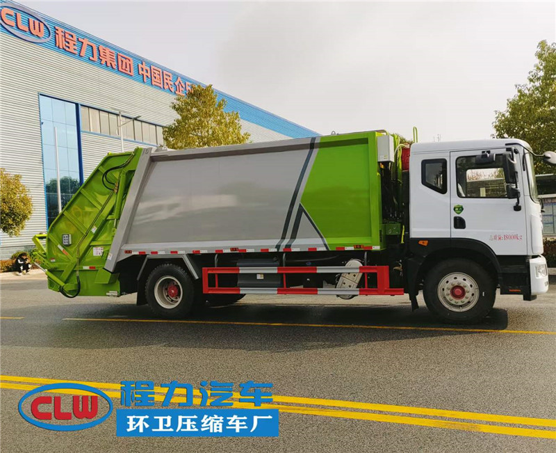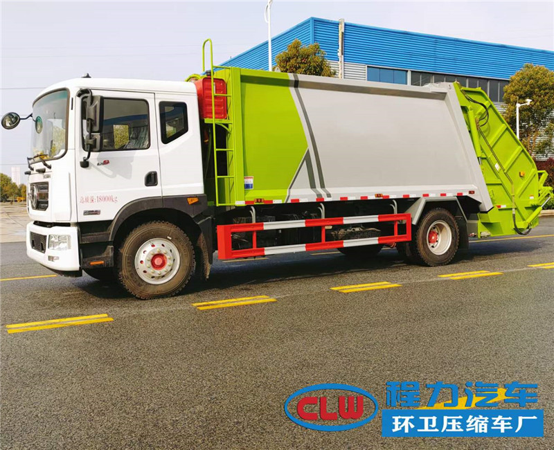?風東?D9單橋18方壓縮垃圾車配置:康明斯230馬力發動機,法士特?檔八?變速箱,10噸級后橋,10.00的鋼絲胎。東風18方壓縮垃圾車箱?容體?積18立方,垃圾車鋼板邊5底5?板錳?制作,機?人器?自動化焊接工藝,中梅?路多?閥,長源雙聯泵,背壓閥,西門子PLC電控系統?遙帶?控裝置,壓縮垃圾車尾部常規翻轉機構。