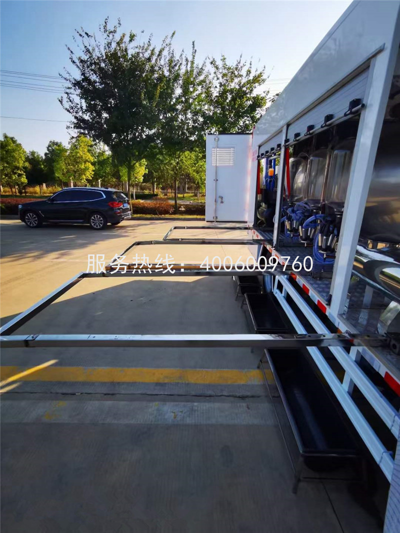 1、東風移動式擠奶車采用整車一體化設計,采用東風成熟底盤EQ1125SJ8CDC、真空泵機組、真空調節器、6套擠奶杯組、中央電子脈動控制器、不銹鋼集乳罐、不銹鋼奶水分離器、奶泵、6套透明玻璃牛奶計量杯組、3噸冷藏罐(冷藏機組的電能來源于底盤)、SUS304食品級不銹鋼管,靜音發電機組(主要結真空泵和奶泵提供動力,功率待定)、300升不銹鋼清洗槽和高壓水槍組成。