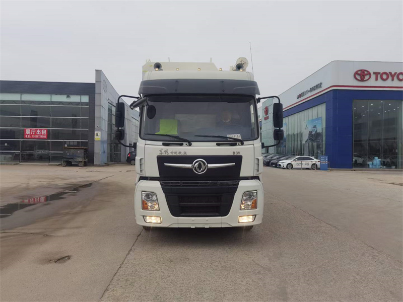 正能農牧飼料車底盤型號DFV1253GP6DJ1,東風天錦D3V高頂雙臥駕駛室飼料車,康明斯B6.2NS6B260發動機,法士特9JS119TA九檔變速箱,1995+3600mm軸距,東風4.5噸雙前橋/10噸后橋,輪胎295/80R22.5 18PR。原廠空調,氣囊座椅,電動玻璃,中控門鎖帶遙控鑰匙。