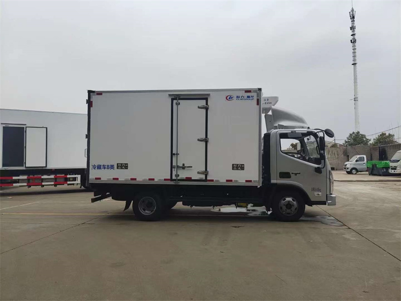 (2)冷藏車廂板材質:內外壁板選用國內優質玻璃鋼(不吸光、隔熱性好、硬度強、抗氧化);中間保溫層厚度8CM。地板采用鋁花紋板,門邊條采用迷宮式橡膠密封條。