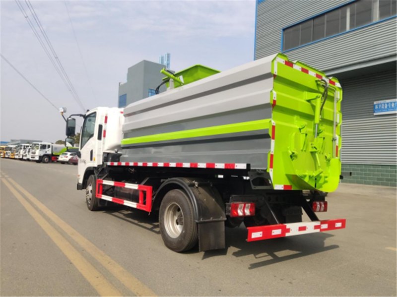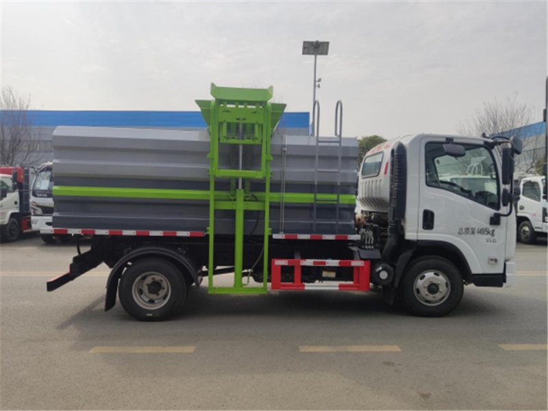 餐廚垃圾車配置:方形罐體,容積約6.5方,錳鋼材質≤3mm;采用江蘇中梅多路閥,江蘇油泵,合肥長源液壓油缸。液壓舉升自卸,進料口采用液壓密封蓋,后蓋液壓開啟、液壓鎖緊,后蓋帶有密封條,鏈條式提升機,可掛120L/240L標準塑料垃圾桶;其他常規配置,可加裝加熱功能。