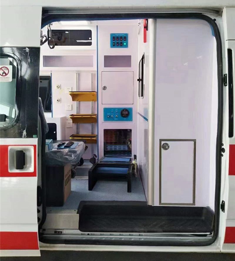 【設計特色】: 程力負壓救護車使用醫療艙隔斷前加裝了雙40L的氧氣架,上面設計了臥鋪,合理舒服。醫院120救護車首選!